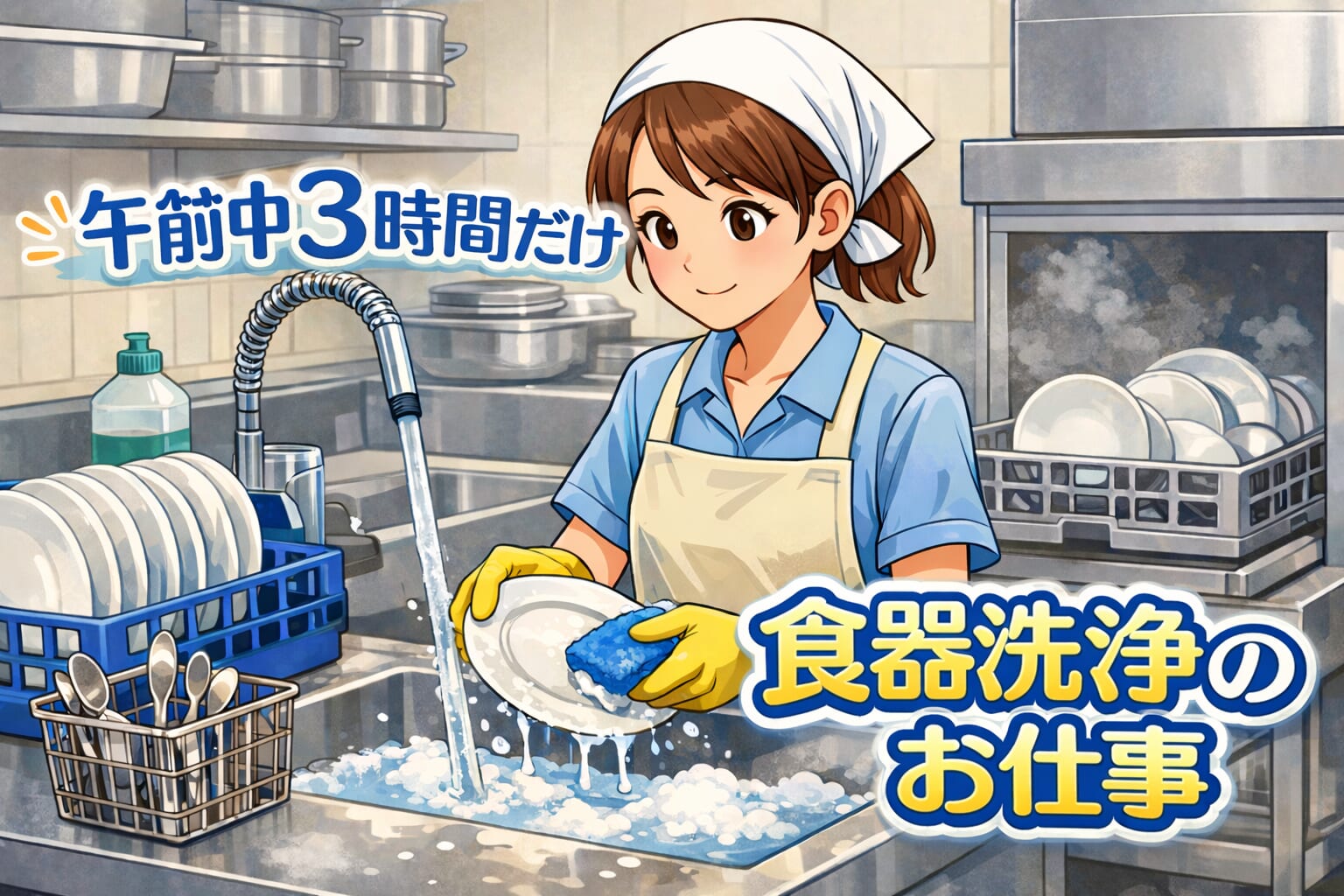 午前中の3時間だけ。 静かにコツコツ進める食器洗浄のお仕事。