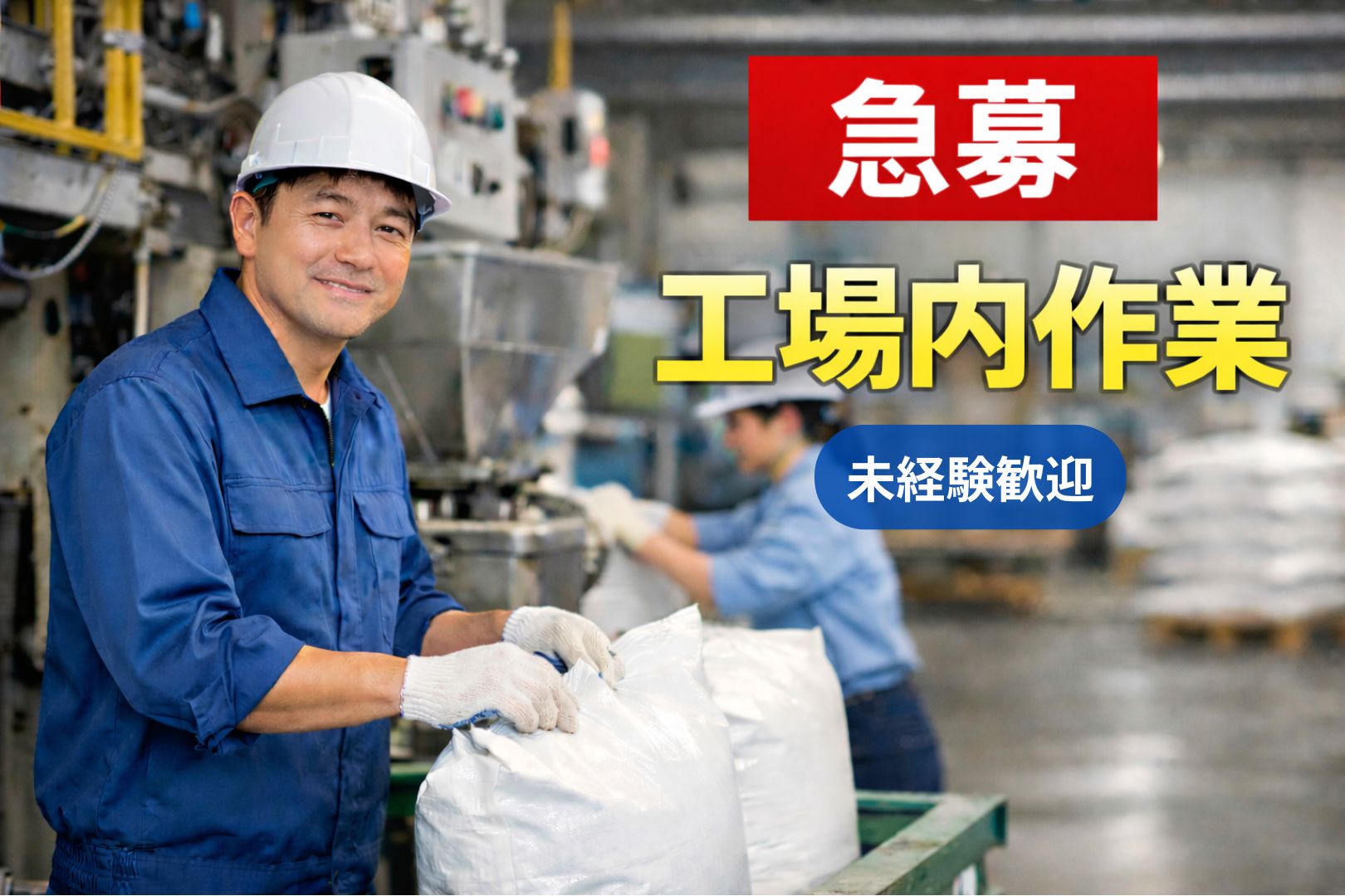 工場内でのシンプルな作業を中心とした製造サポートのお仕事です。 原料の充填やパレットへの積み込みなど、手順に沿って進める作業が中心。 未経験からスタートでき、体を動かす仕事が好きな方に向いています。